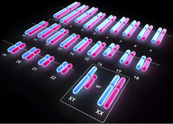 normally contains 23 pairs of chromosomes, for a total of 46. Twenty-two of these pairs, called Autosomes, they look the same in both males and females. The 23rd pair, the sex chromosomes, differs between males and females. Females have two X chromosomes, while males have one X and one Y chromosome. |