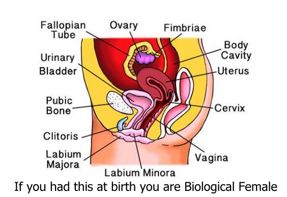 Woman Have wider hip structure, functional breasts different genitalia, Vagina, Uterus, Ovaries, menstrual Cycles. Woman produce Eggs that get fertilized from male sperm, Men do not! |